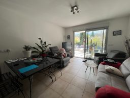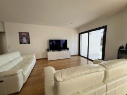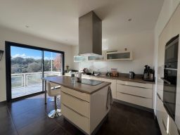 un grand espace de vie, une cuisine équipée avec accès direct sur une grande terrasse et une arrière cuisine attenante, deux chambres, une salle d'eau, un WC séparé, une suite parentale avec un dressing salle de bain et un WC séparé, une buanderie, un garage double. Le Tout en parfait état.