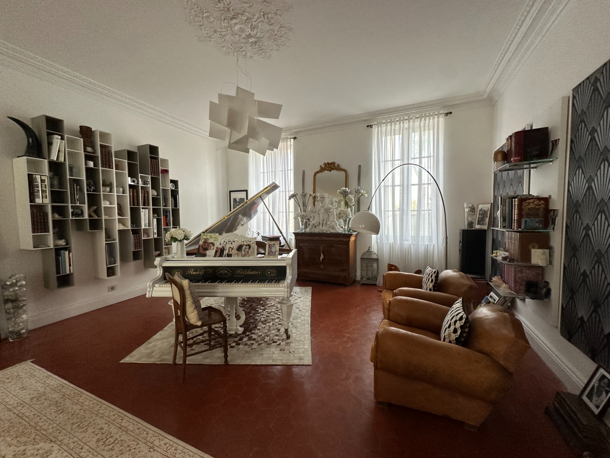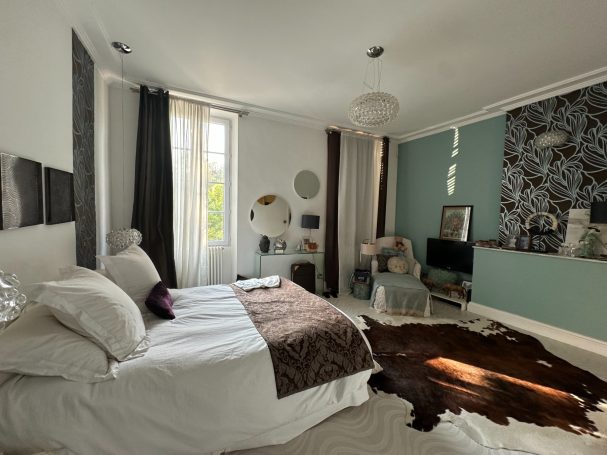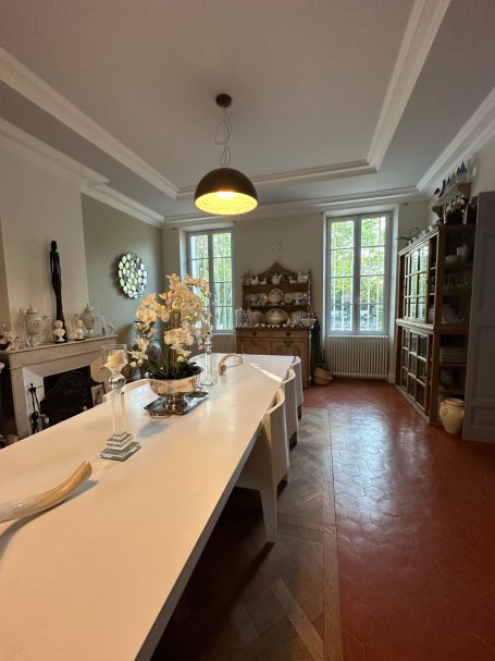 - un logement principal entièrement rénové avec des prestations haut de gamme de 252 m2 environ (Loi Carrez) : au rez-de-chaussée entrée, salon(59 m2), cuisine équipée/ salle à manger (41 m2), dégagement (11m2), wc independant, une cheminée en état de fonctionner et une autre non utilisée, au 1er étage : 4 chambres avec chacune une salle d'eau, un buerau, un dressing