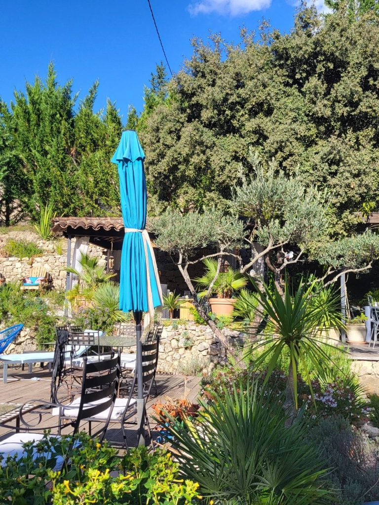Terrain arboré avec notamment plus de 60 oliviers producteurs d'huile d'olives